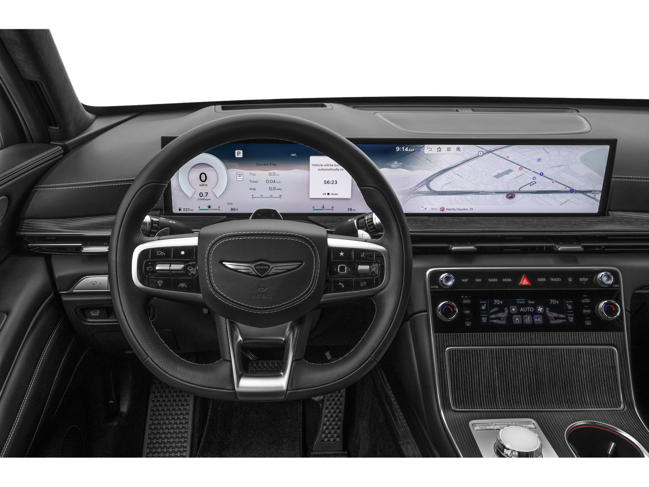 - Radio: AM/FM/HD Bang & Olufsen Premium Audio -inc: 27" OLED instrument cluster and navigation system, SiriusXM Radio w/90-day trial subscription (not available in AK or HI), Apple CarPlay and Android Auto (wireless late availability), Genesis connected services, Bluetooth® hands-free phone and audio streaming system, Wi-Fi hotspot and USB connectivity